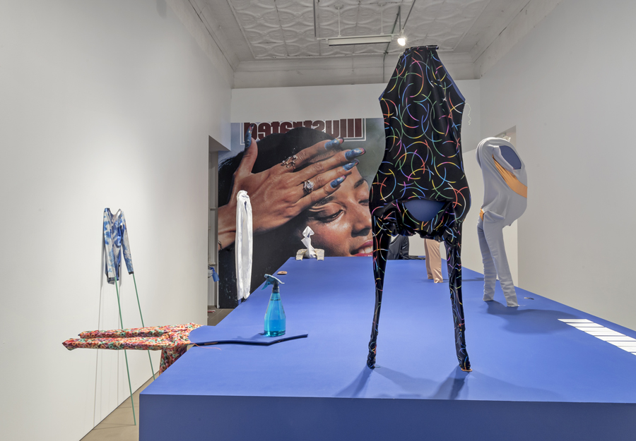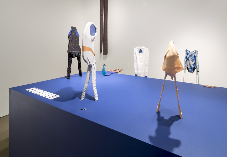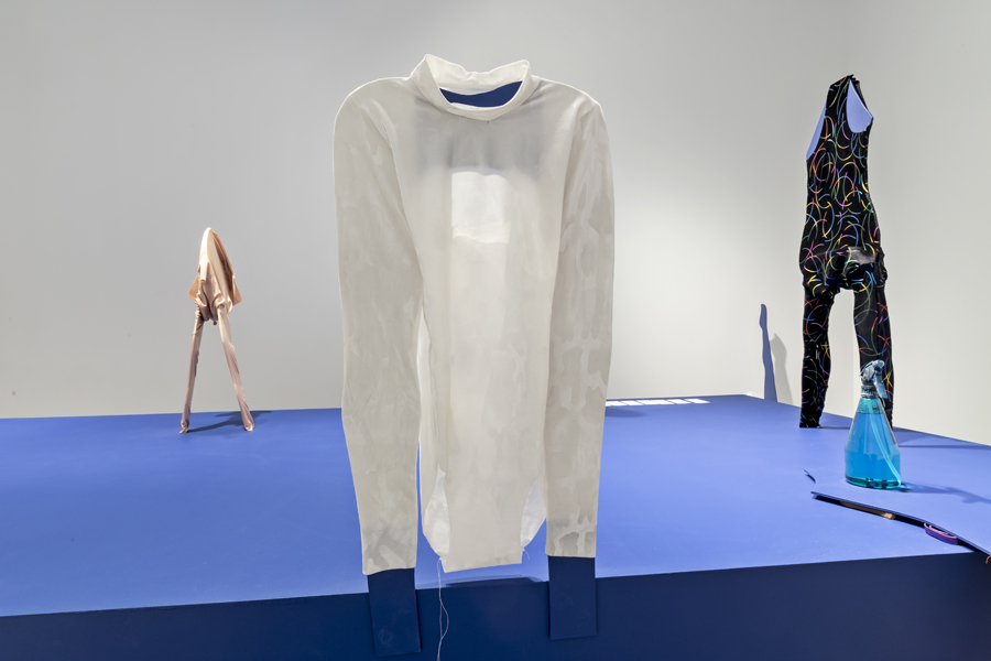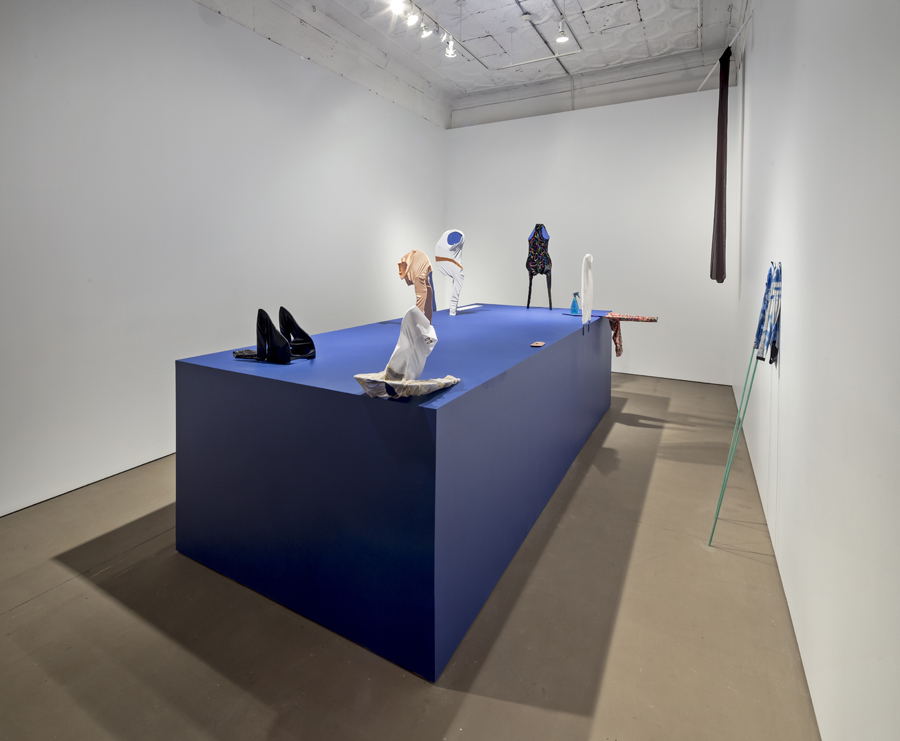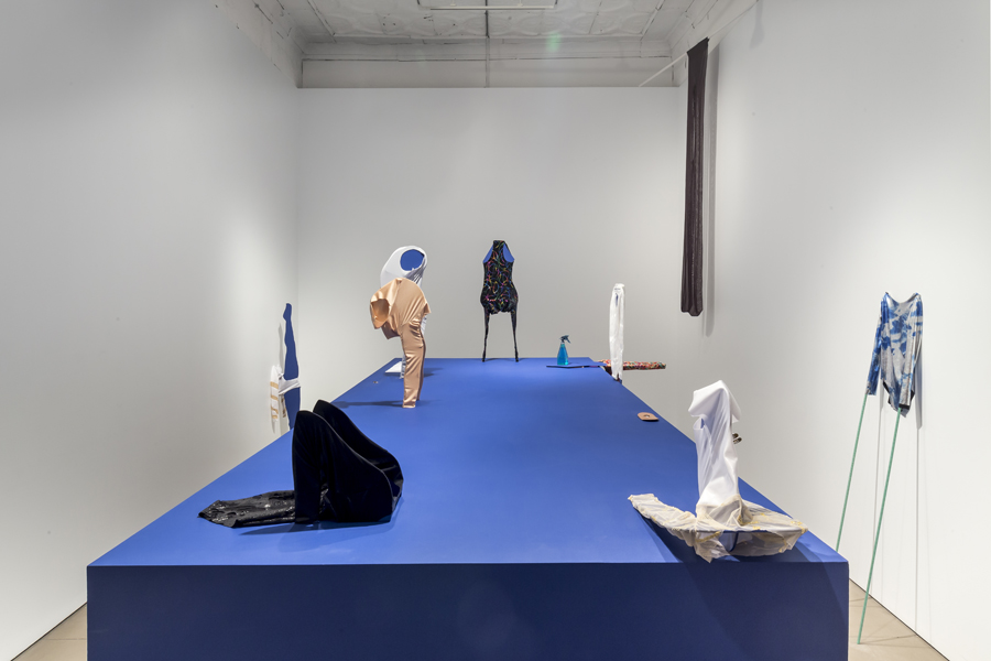 Karen Kraven’s works set up unexpected encounters between sculptures and images, uncanny resemblances and misleading juxtapositions. Flip Flop, Punch Front continues Kraven’s interest in sport with an exploration of adornment, performance and conceptions of gender, class, race and nation state. The title of the exhibition refers to specific moves within gymnastics where action, stasis and the ability to push oneself manifests through composed performance. Focusing on excerpted elements of gesture, costume, decorated nails and leotards, and unbridled conviction, Kraven gathers bodily forms and images prompting the question of what is missing from the action.
