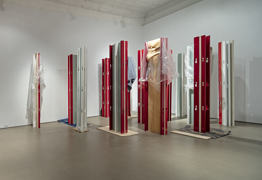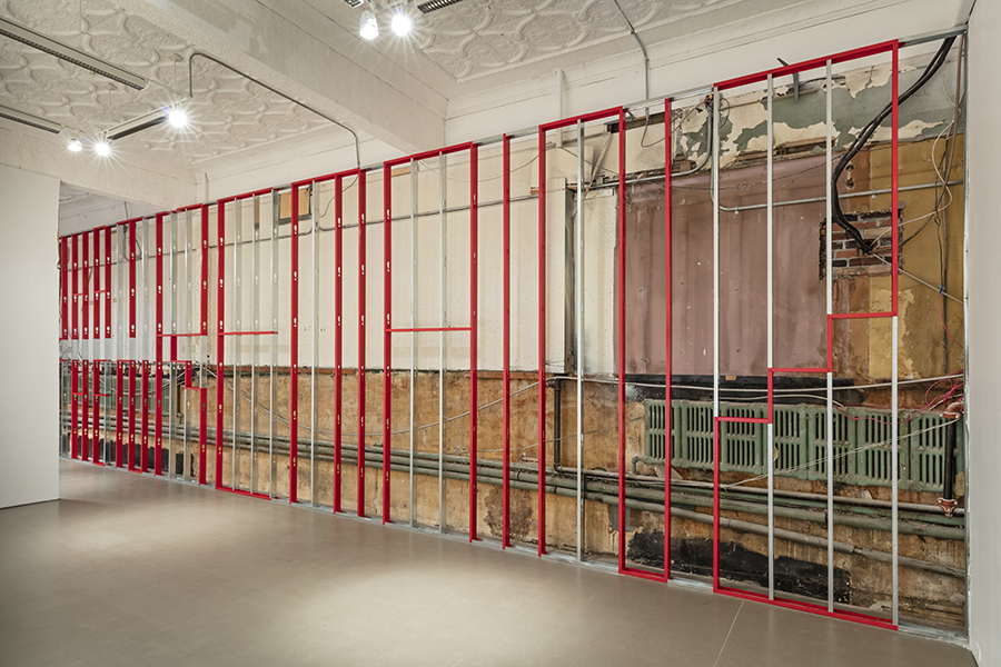 Linklater explores the structural language of an institution and space to develop a series of structural responses. Linklater considers the internal language of walls, the spaces for the Indigenous body, and how spaces of inclusion can be extended. Ubiquitous materials of construction, gypsum, plywood and steel mined and extracted from the land, are repurposed in a series of 8 foot high sculptures, their span mimicking that of Linklater’s chest and height referring to his height with extended arms. Furthermore, there is a large-scale structural intervention in the galleries, the removal and replacing of the east gallery wall introducing a sentence questioning Indigenous sovereignty of land and law, and legacy.