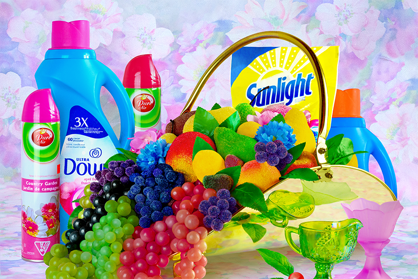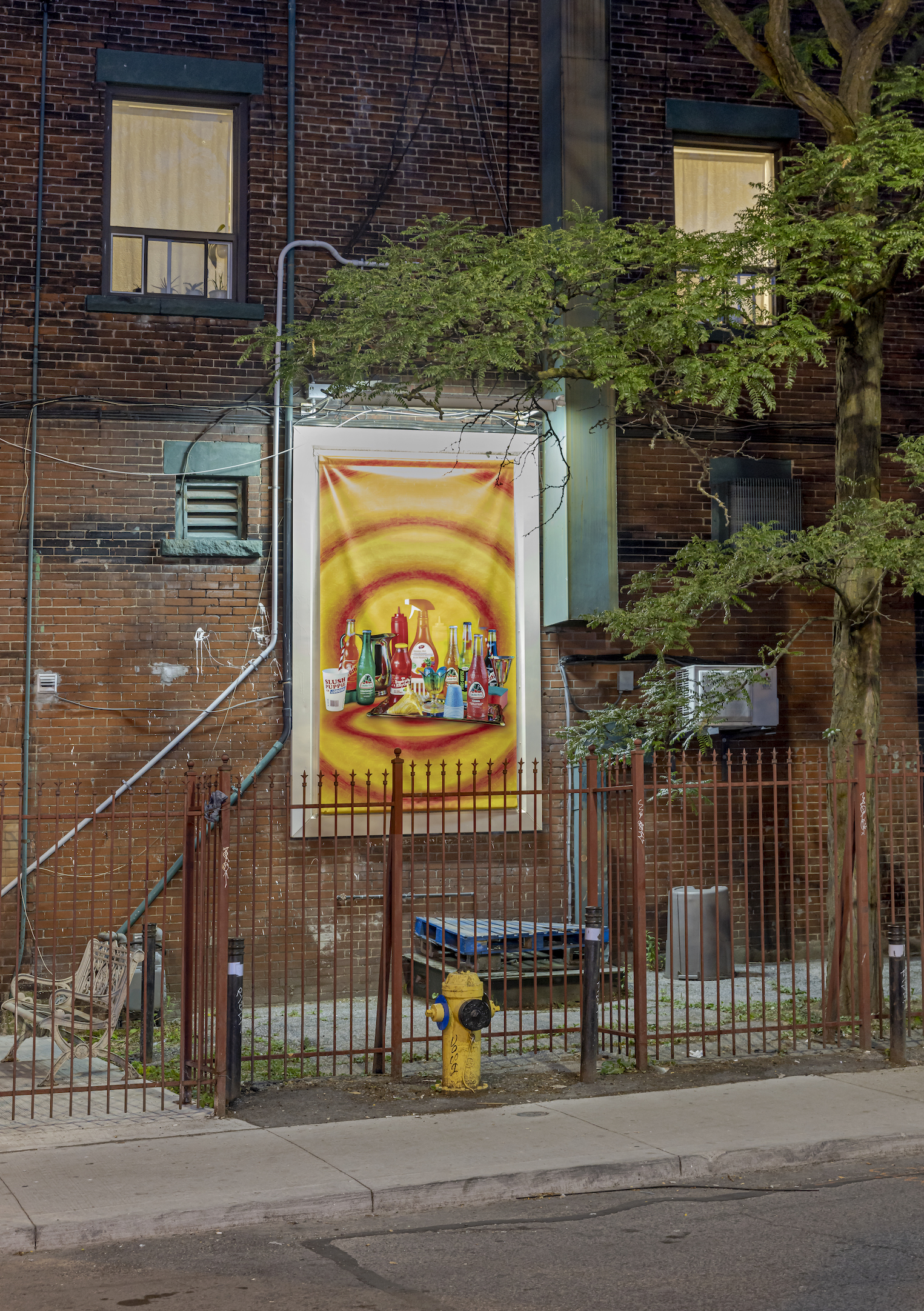 Amidst the city’s heat, a burst of cool, fresh air emits from Shellie Zhang’s Ode to Summer, the culmination of her yearlong series A day passes like a year, which chronicles the changing seasons and environment of Bloordale Village in Toronto’s west end. The neighborhood is home to convenience stores galore, Bengali grocers, and Caribbean restaurants like Vena’s Roti (gone but not forgotten) and Caribbean Queen of Patties, above which I used to live. Zhang arranges the liquid offerings of these neighborhood landmarks into a delicious rainbow, a spectrum of orange soda, fruit punch red, green grapefruit, kola champagne yellow, cyan Slush Puppie, and grape soda violet, whetting our appetite for summer revelry.