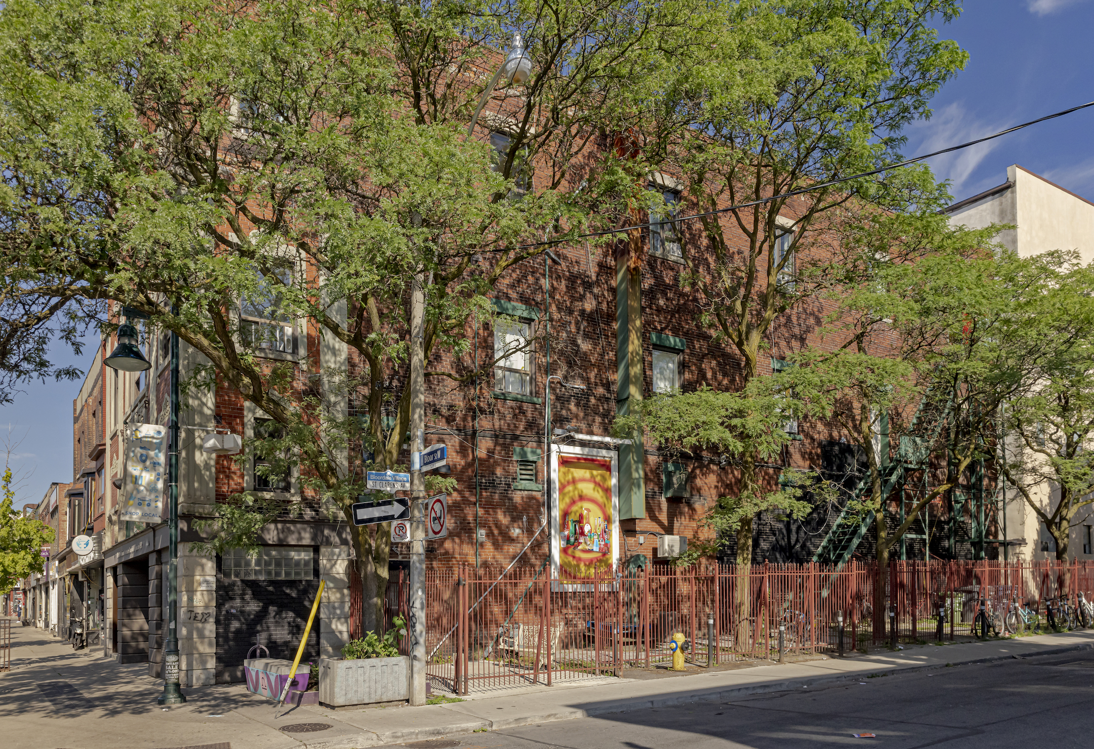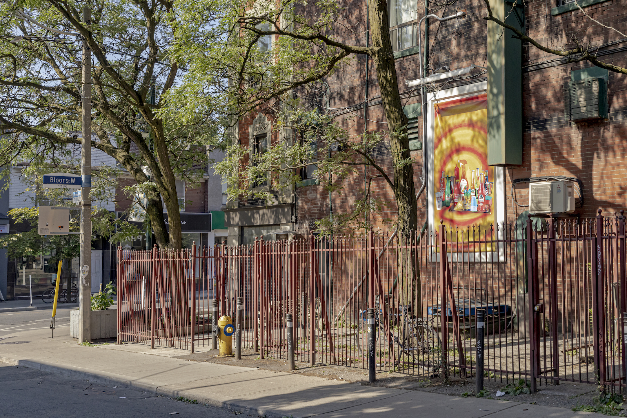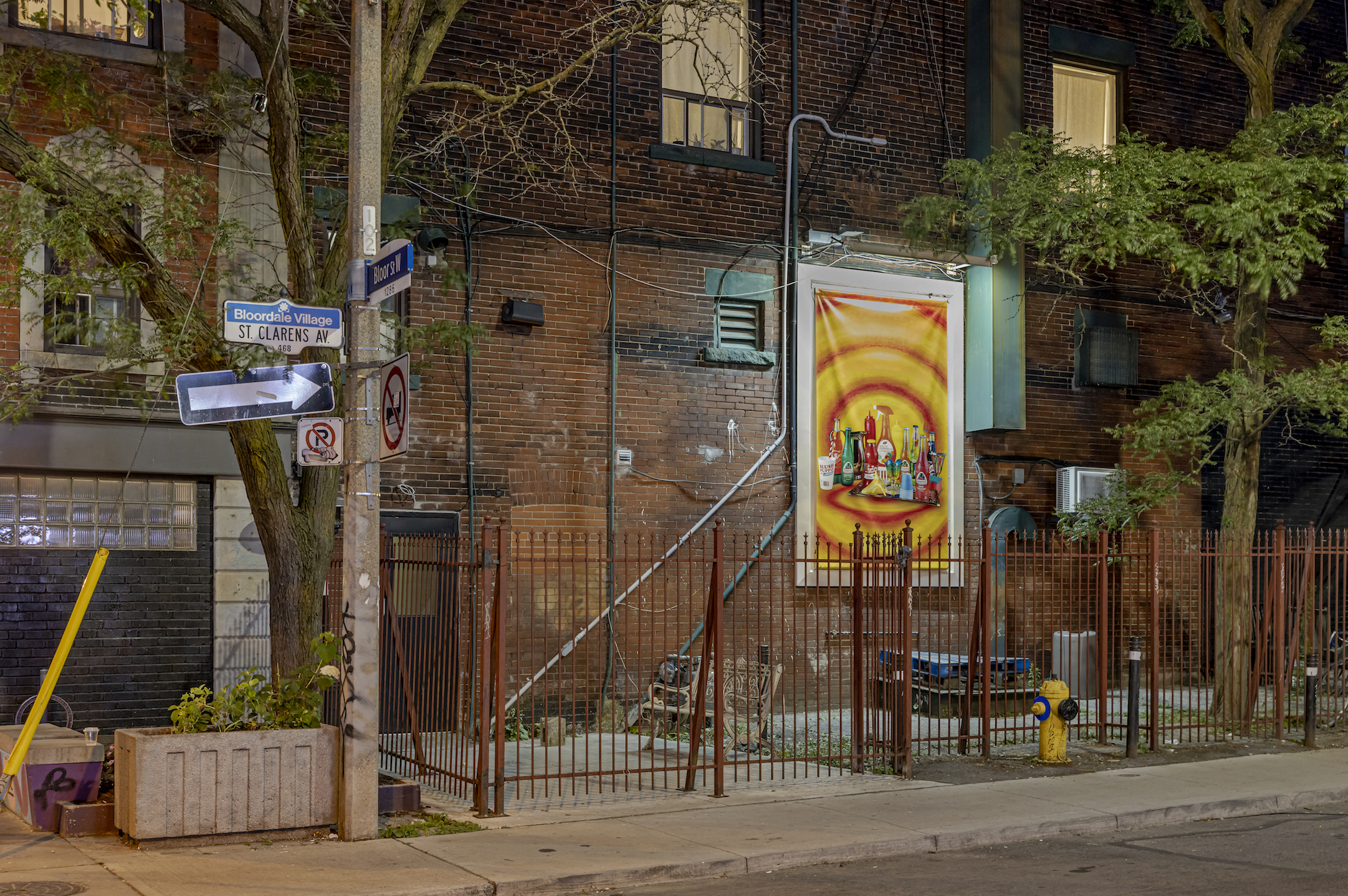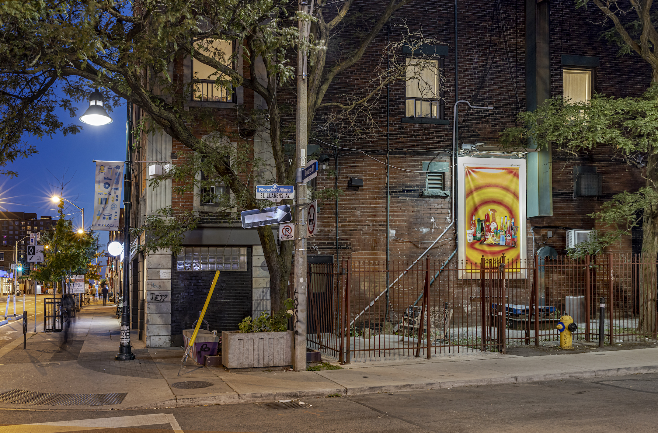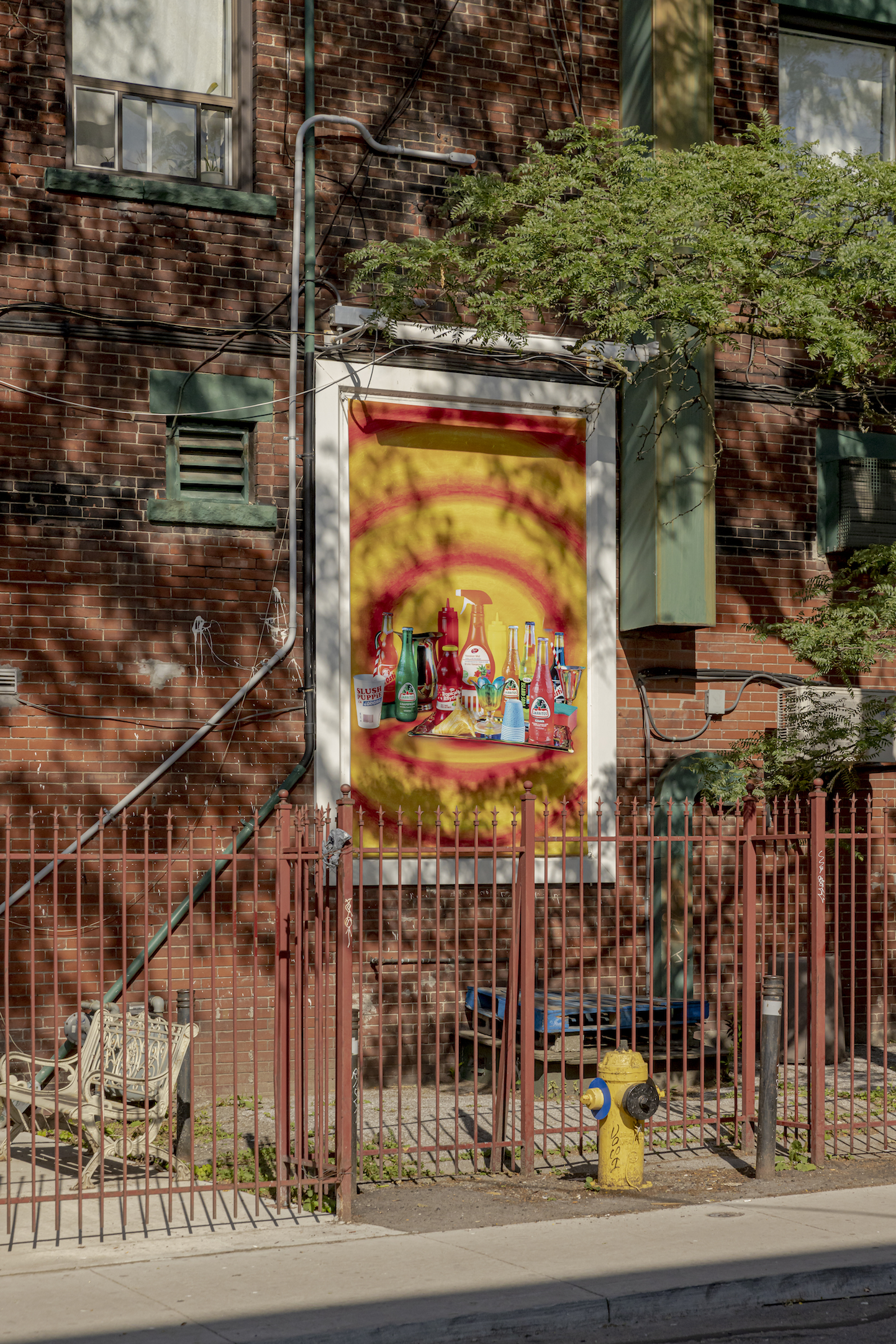 A pattern of psychedelic circles form a sundial, saturating the frame at this bustling corner of Bloordale. Staring at them transports me back to the summers I spent in the neighborhood, the perfume of allspice and thyme wafting up from the restaurant below, weaving through the small crowd of cyclists awaiting entry to the bike repair shop, gearing up for riding’s peak season. I pluck one of Spongebob’s bubblegum eyes out of its sorbet socket, watching the passersby as I chew, many of them parched and craving a sip of candy coloured relief. For a little while Ode to Summer loosens the heat’s grip with its promise that the sun will set, the air will grow cool, and our thirsts will be quenched.