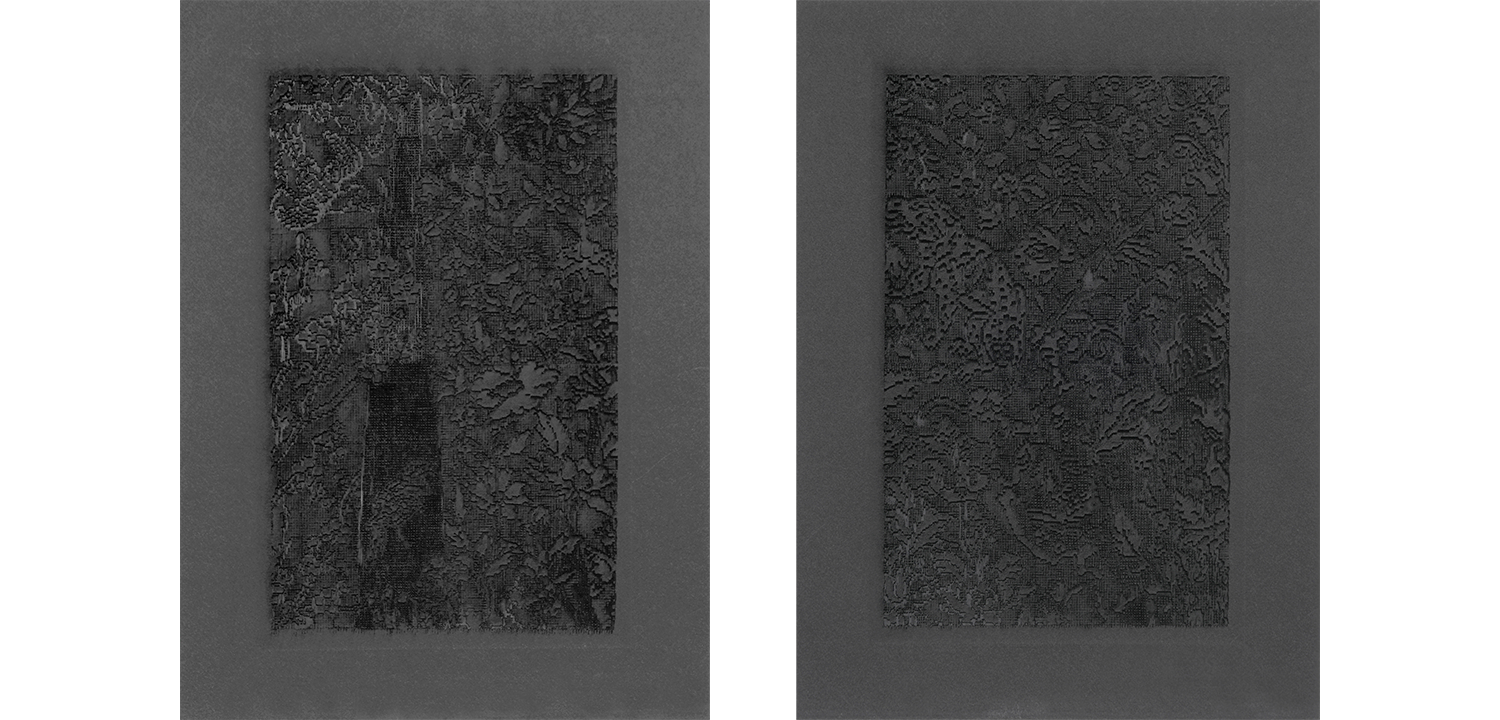 The artist’s work is strongly rooted in material and cultural research, storytelling, and drawing connections. Her multidisciplinary practice spans the mediums of drawing, painting, printmaking, fibres, audio, video and installation, and explores narratives of cultural and material assimilation and appropriation. For the exhibition, she created a new body of work in DCA Print Studio through a production residency in January 2024, including screenprint, paper pulp casting, embossing and laser etching.