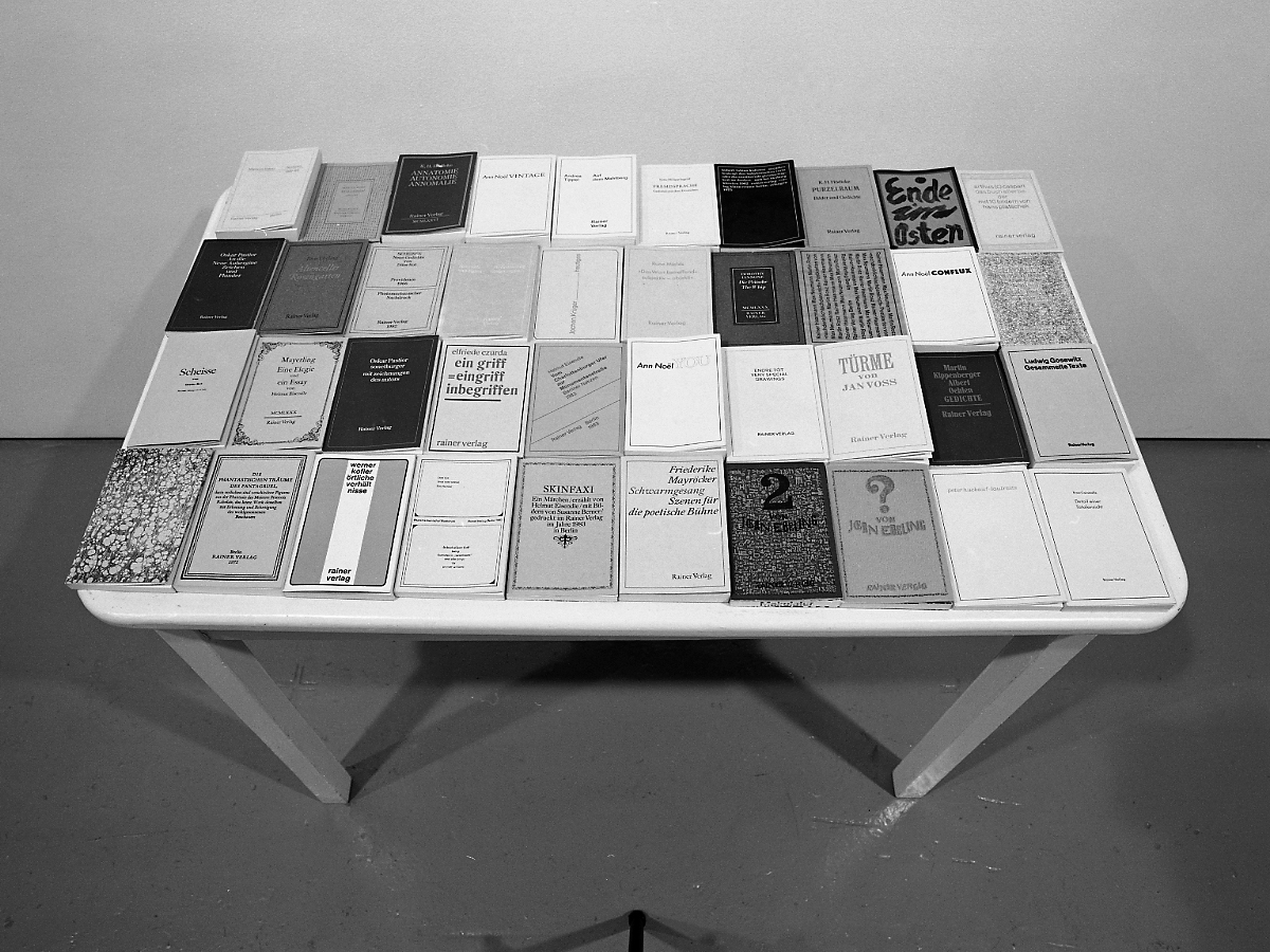 Also included with the exhibition are video works by eight artists and a selection of artists' books published in Berlin by Rainer Verlag. An extensive catalogue with short essays on contemporary art practice in Berlin will accompany the exhibition.
