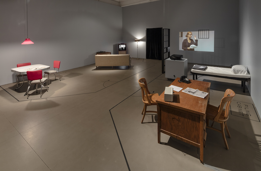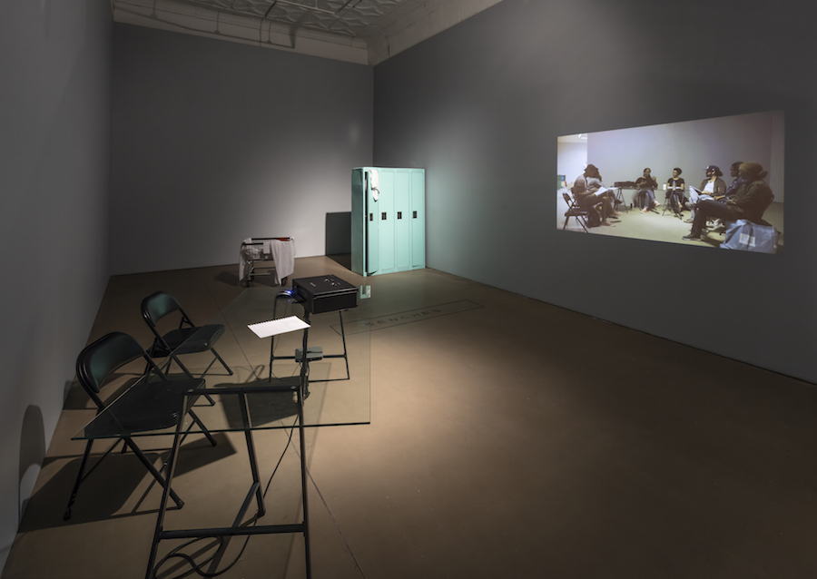On Trial The Long Doorway re-inserts this forgotten teledrama into the present day. The galleries of Mercer Union are transformed into a series of sets (a jail cell, a legal aid office, a living room, a locker room and court house) for live rehearsals and recordings to take place every Saturday for its duration. These rehearsals take place amongst archival documents from the era, from Canadian documentaries exploring race relations and University of Toronto’s The Varsity, to Life magazine’s coverage of the Emmett Till murder trial. The script will be animated by five Black actors, multiplying their roles and representations, while blurring the lines between black and white, rehearsal, action and performance. As curator Liz Park has written “The political potency of Bowen’s work lies in her ability to recharge the power of historic and archival documents.”³ On Trial The Long Doorway is an installation and ‘performed production’ work that uses the gallery space as a set for rehearsals and present day video production of the teledrama, from audition, to rehearsals, to final shot.