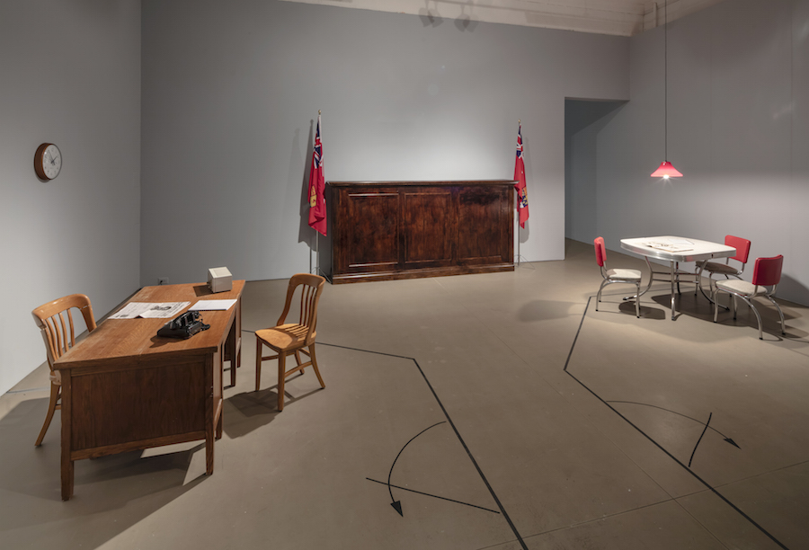 Mercer Union is delighted to present a commissioned solo exhibition by Toronto-based artist Deanna Bowen. Working across film, sculpture, performance, installation, drawing and photography, Bowen excavates traumatic episodes and invisible histories. Through genealogical and historical research, she digs into histories of slavery, oppression, migration and Civil Rights’ movements, in North America, making discerning personal work through the historical. From re-staging a 1964 interview between an ABC News reporter and the Klu Klux Klan’s Imperial Wizard in Notasulga, Alabama, against the backdrop of a violent school-integration incident,¹ to tracing her family’s history from their first documentation in 1815 in Jones County, Georgia,² to today, she makes present the invisible with political force.