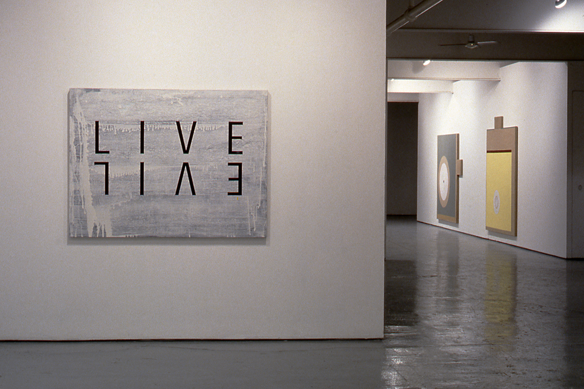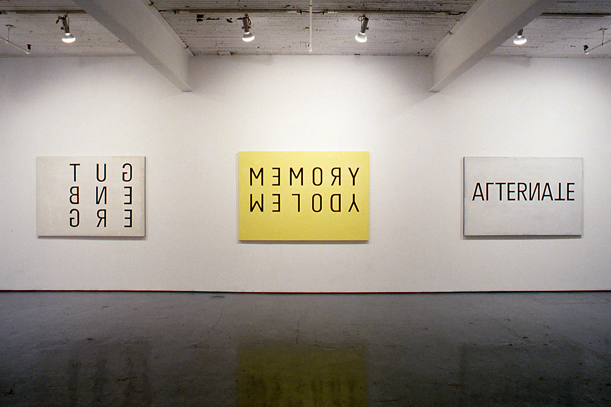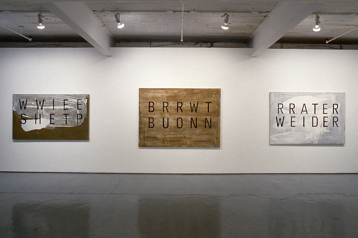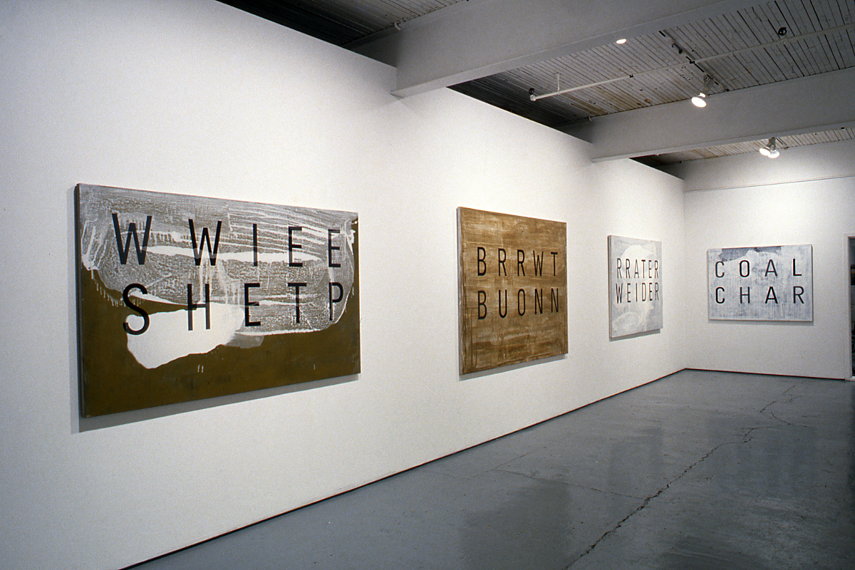 In his most recent works, Erisalu appears to have repudiated his earlier virtuosity in favour of a methodology that is random and anti-aesthetic. Commencing with the belief that rendering an image upon canvas limits the experience of the viewer, Erisalu has produced a series of paintings utilizing language, words, numbers and letters, which identify the subject rather than drawing or painting it. In so doing, Erisalu provokes the viewer to realign the sequence of visual and verbal elements to construct meaning.