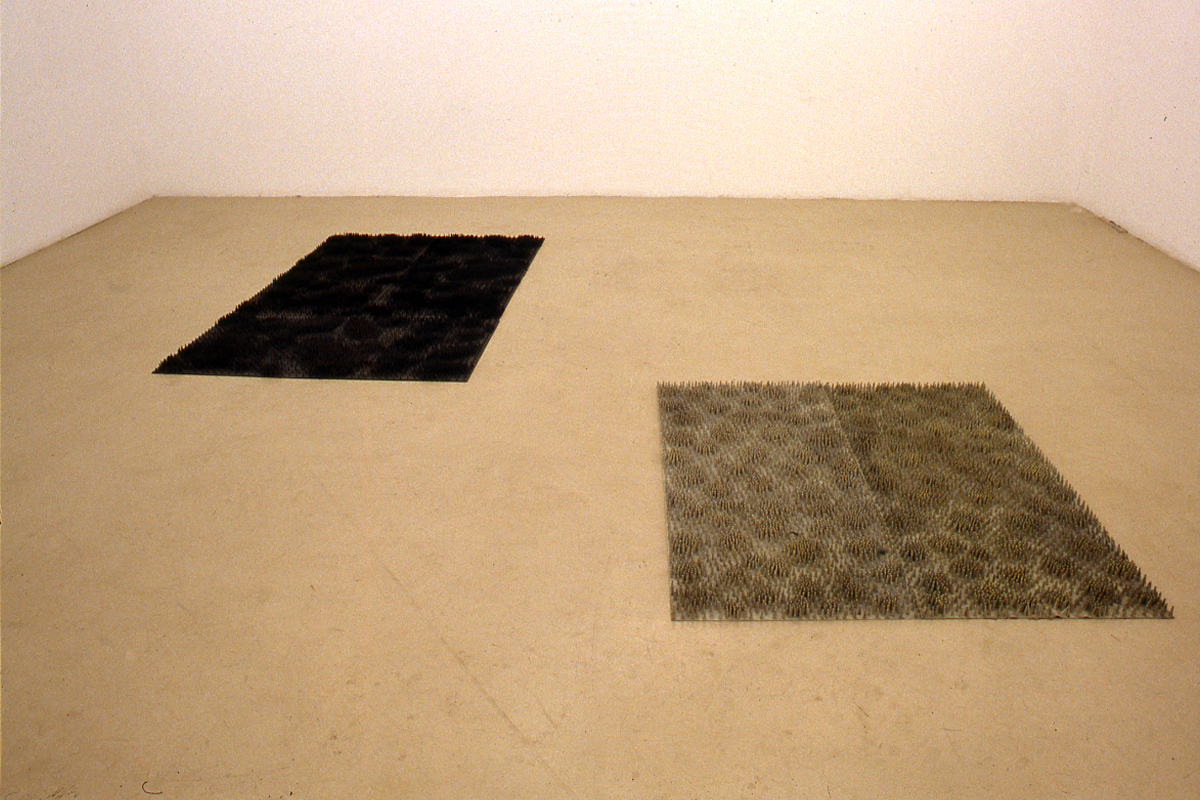 Michael Meredith constructs several works that complement Ether as ironic gestures towards lifestyle and design, highlighting the market fundamentalism of the urban environment as shopping centre. Meredith produces glow-in-the-dark floor mats, honeycomb light fixtures, and a special muzak mix for the gallery. This is literally the environmental condition of Ether’s city. The fixtures from ceiling to floor are drawn out of natural formations that rework rhizomatic clusters. The opposition between glow-in-the-dark floor mats and the light technology is not so much a contradiction as a statement on the randomness and discontinuity of the sensory dressing. Meredith insists on a synaesthetic experience that underscores Ether’s disembodied territories. Yet beyond this, his pieces offer no sensual comfort and the muzak (music produced to increase worker and consumer productivity) echoes the empty figures of Ether’s malls.