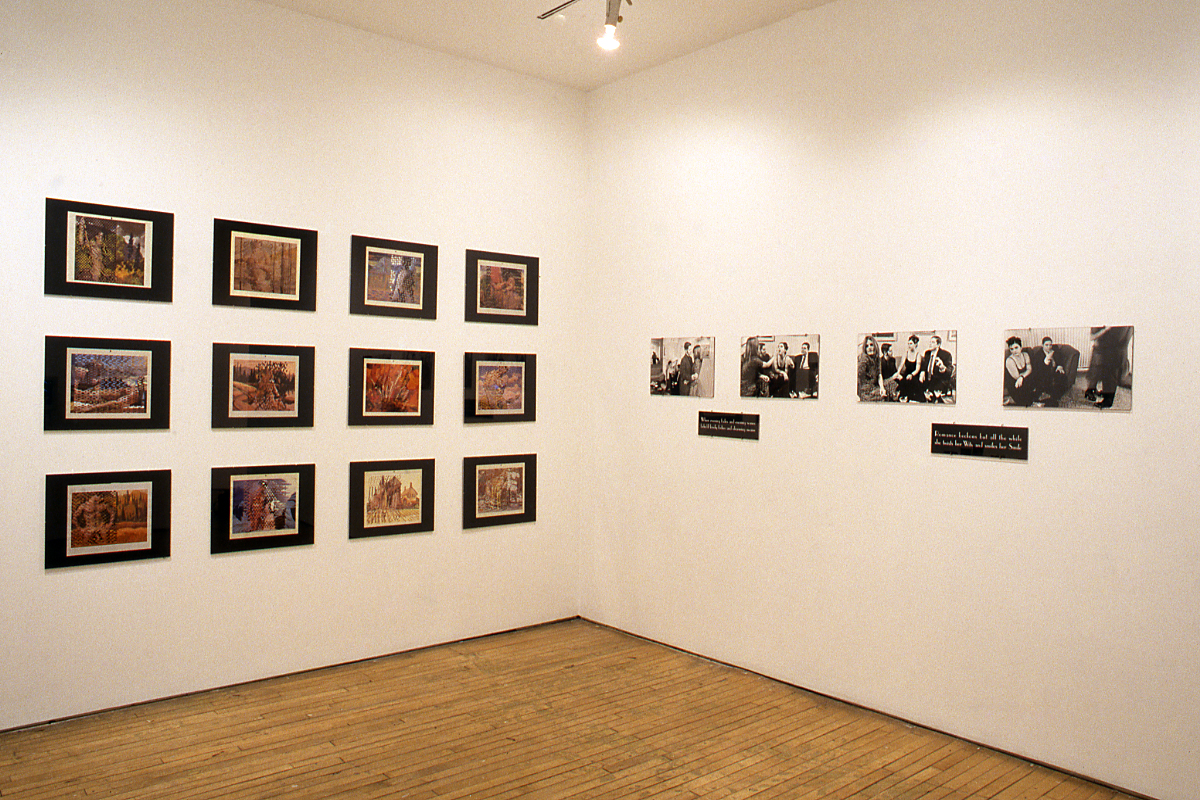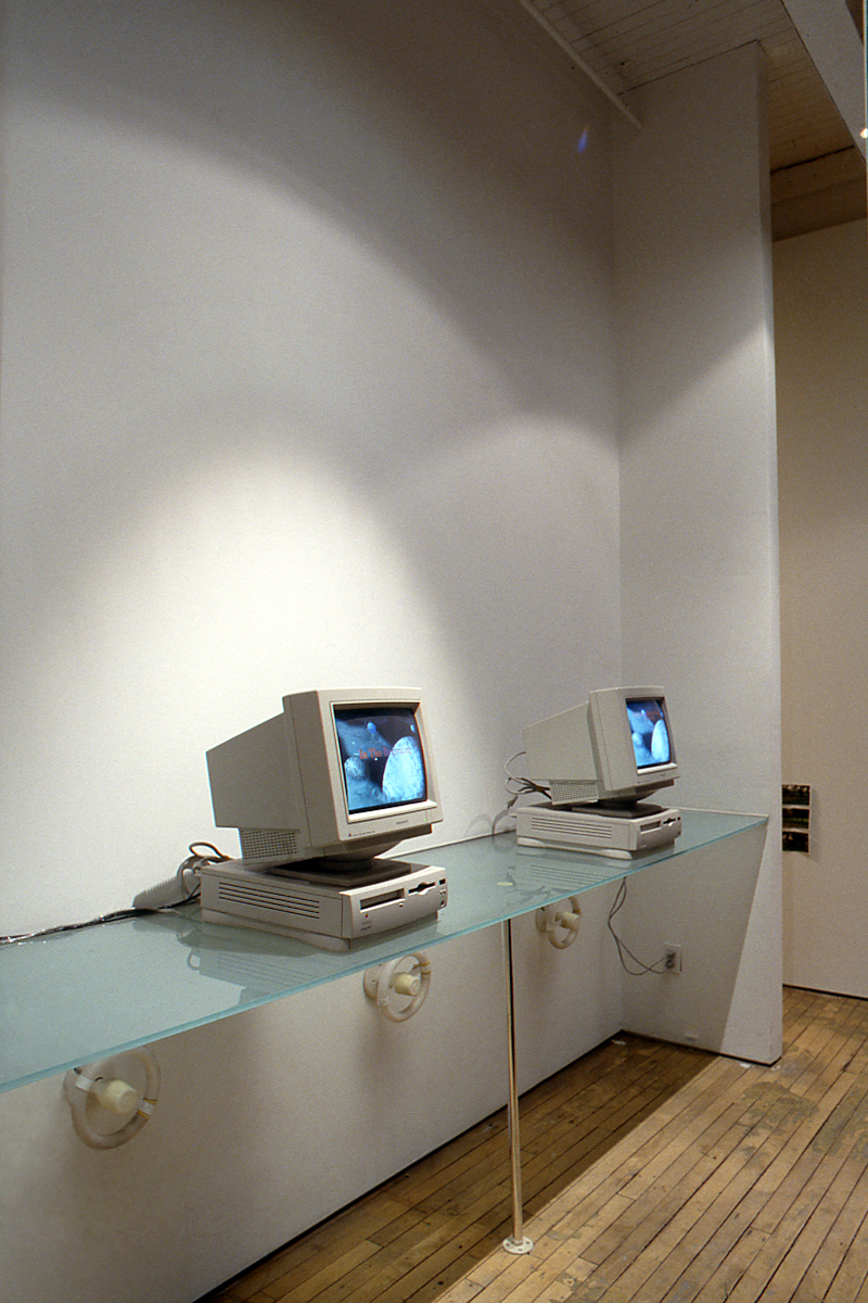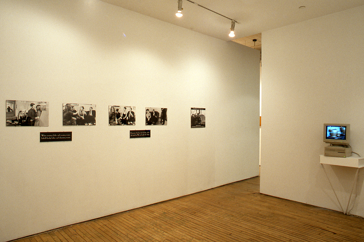 Guest curator Andy Fabo, has exhibited collaborative videos, bookworks and installations extensively throughout North America including The Art Gallery of Ontario, the Power Plant and Hall Walls. Charlynn Bedroux & Anne Goldin have produced, curated, directed and collaborated on a number of video projects exploring Lesbian identity and AIDS. Bedroux & Golden are currently working on the Boor Sisters project. Cehan has performed extensively in Toronto and is currently working with computer animation. John McLaughlin is a member of the Spontaneous Combustion collective and the Homogenius collective. In 1996, McLaughlin exhibited at the Museum of Installation Art in London, England and will be exhibiting in two group shows at the museum in 1997.
