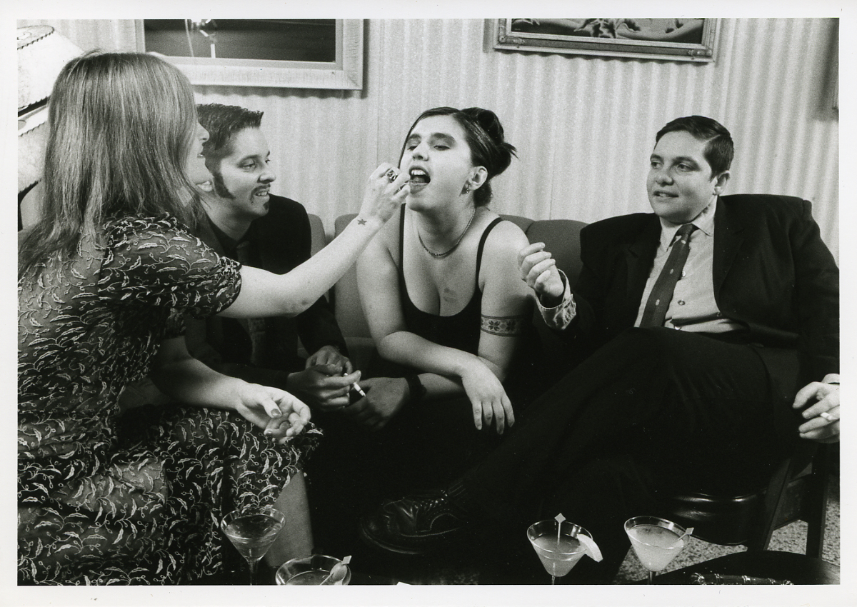 For the Ghostwriter 4 Project Room exhibition, guest curator Andy Fabo has invited four artists to explore themes of gender/identity politics. Charlynn Bedroux & Anne Goldin will exhibit drag king photographs while John McLachlin will produce a site-specific wall map of Toronto cruising areas. Brent Cehan, through computer graphics and collaged calendars, explores realms of national/sexual identities.