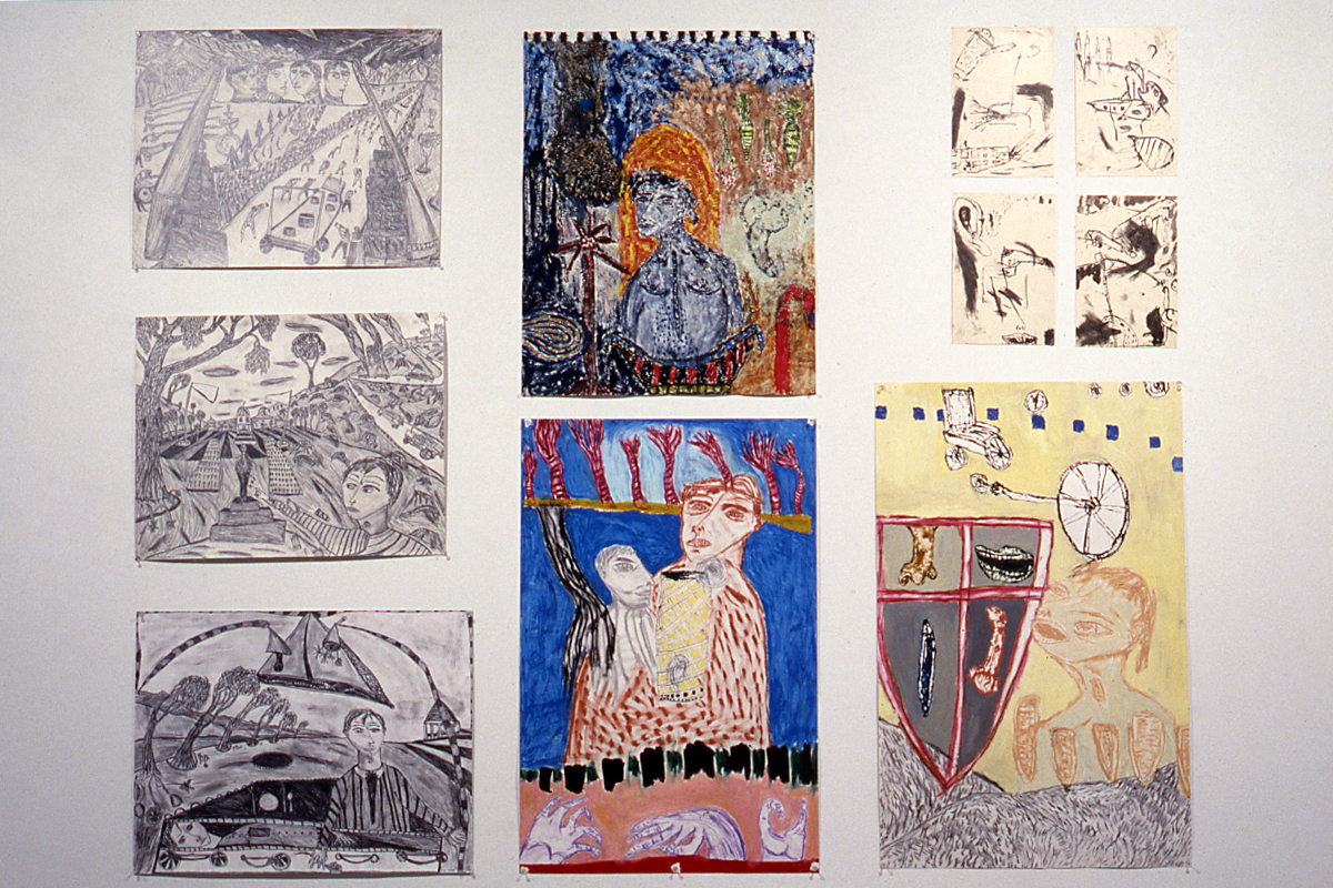 AF: A lot of Denise's work seems beyond language, it's hard to describe. So I thitk this work is beyond ethics, although some of her works that incorporate the human figure might have a moral tone. Gregory's work definitely is... When I describe it as 'a waif's journey', it is an ethical sort of work about finding out about good and bad, and losing his innocence in the world. That is the sense you get from it, like a very expanded version of David Hockney's THE RAKE'S PROGRESS.