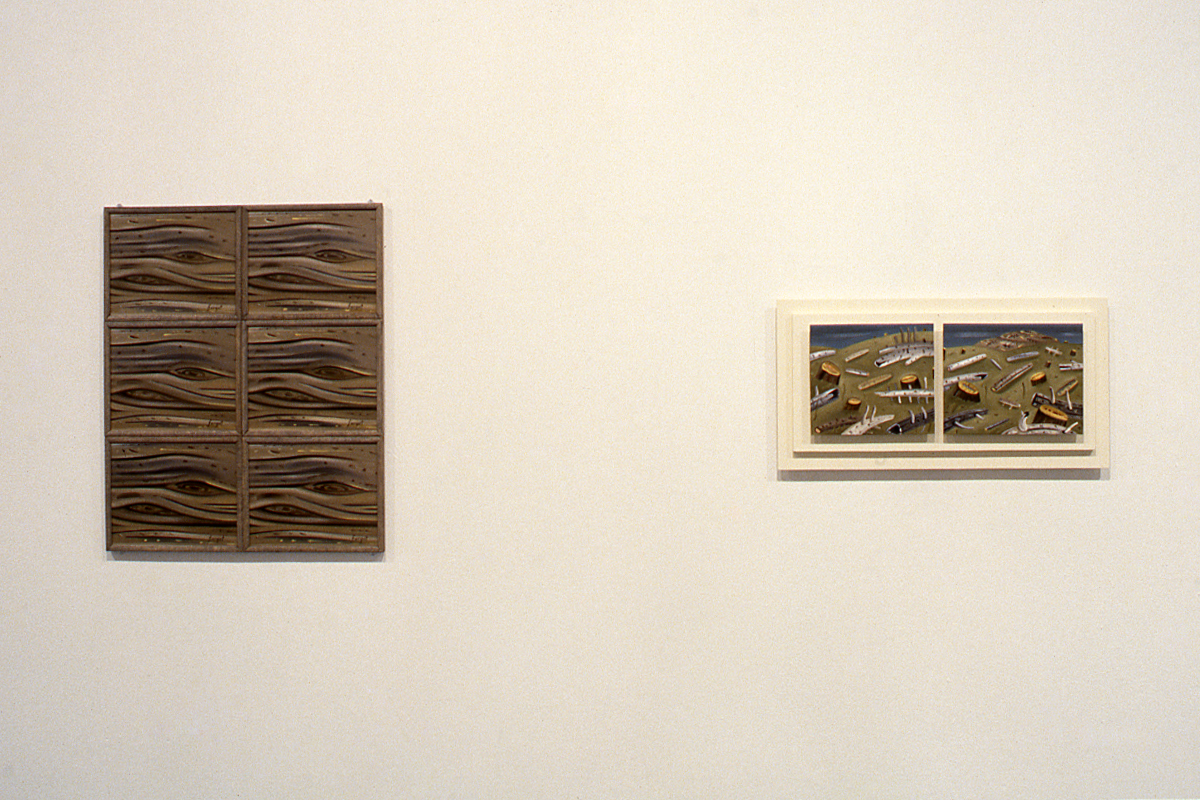Jennie White's paintings of a deforested landscape endeavor to effect language, to be sensual objects articulating emotions and thoughs. Yet there is no hand-wringing angst to these panoramas, rather a sort of sly stillness, or a stubborn patience that may or may not be justified. By merging elemental images with intensely tactile planes, White strives for the emergence of symbols with extreme physical impact which entice the viewer into direct contact with the work.