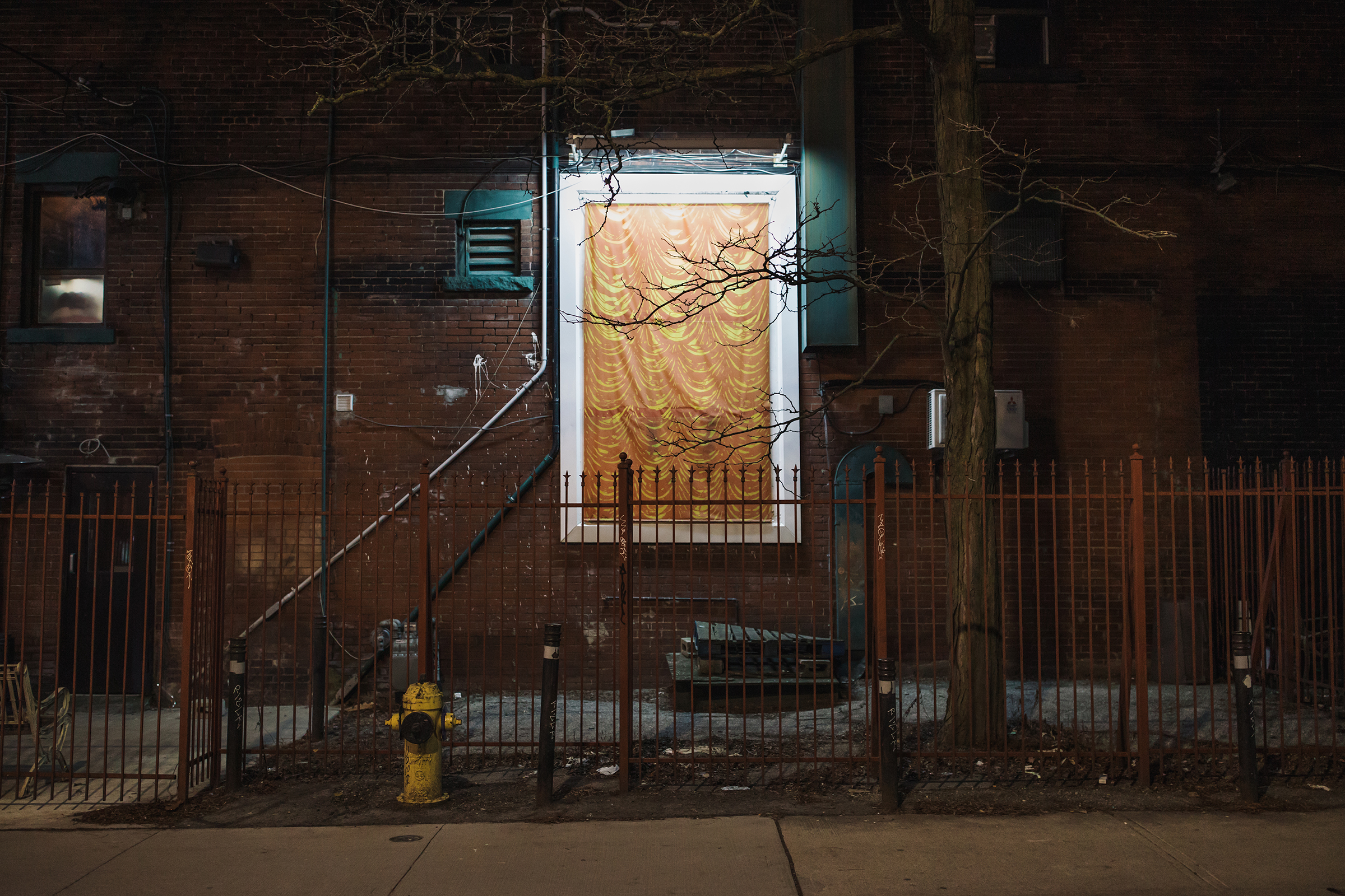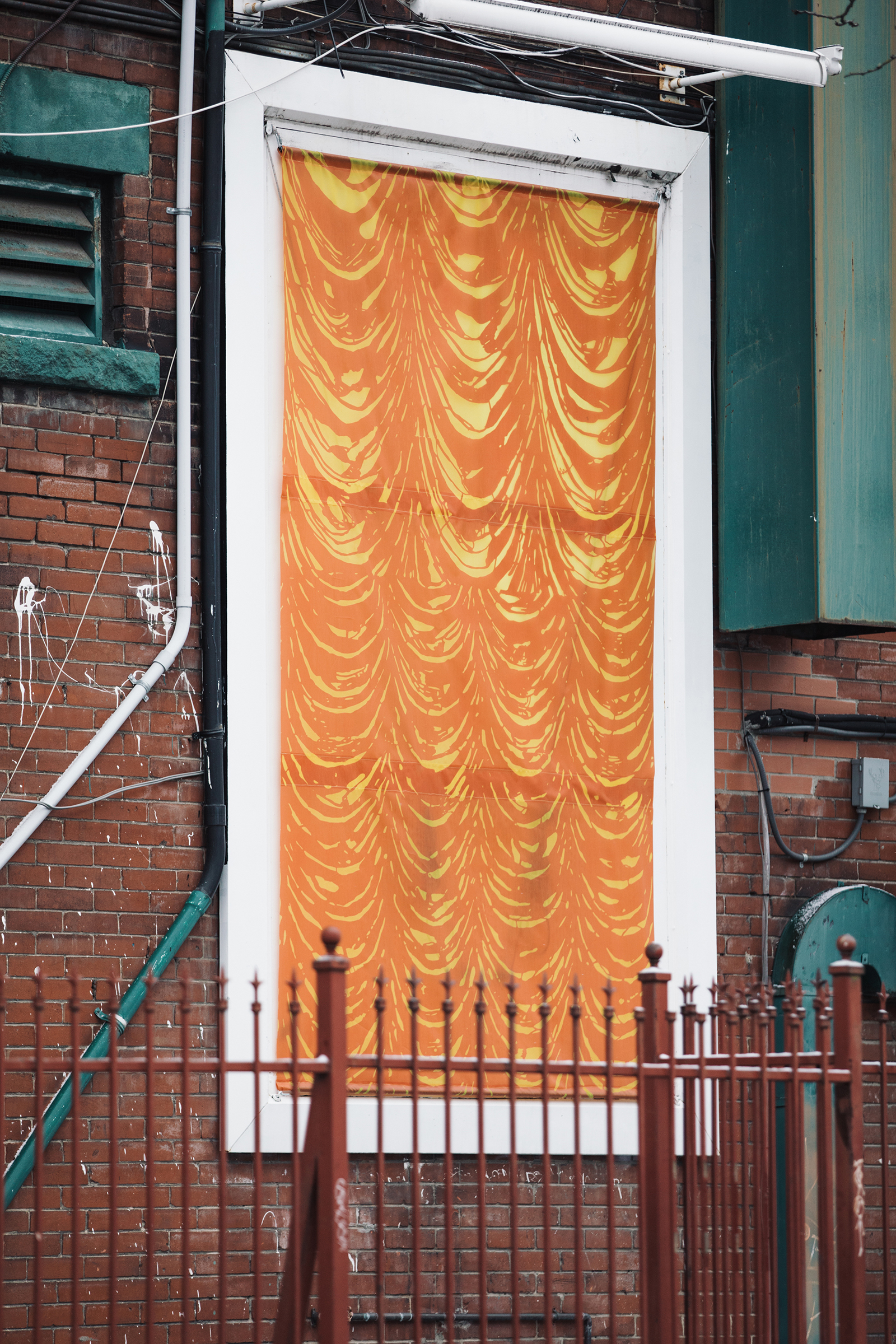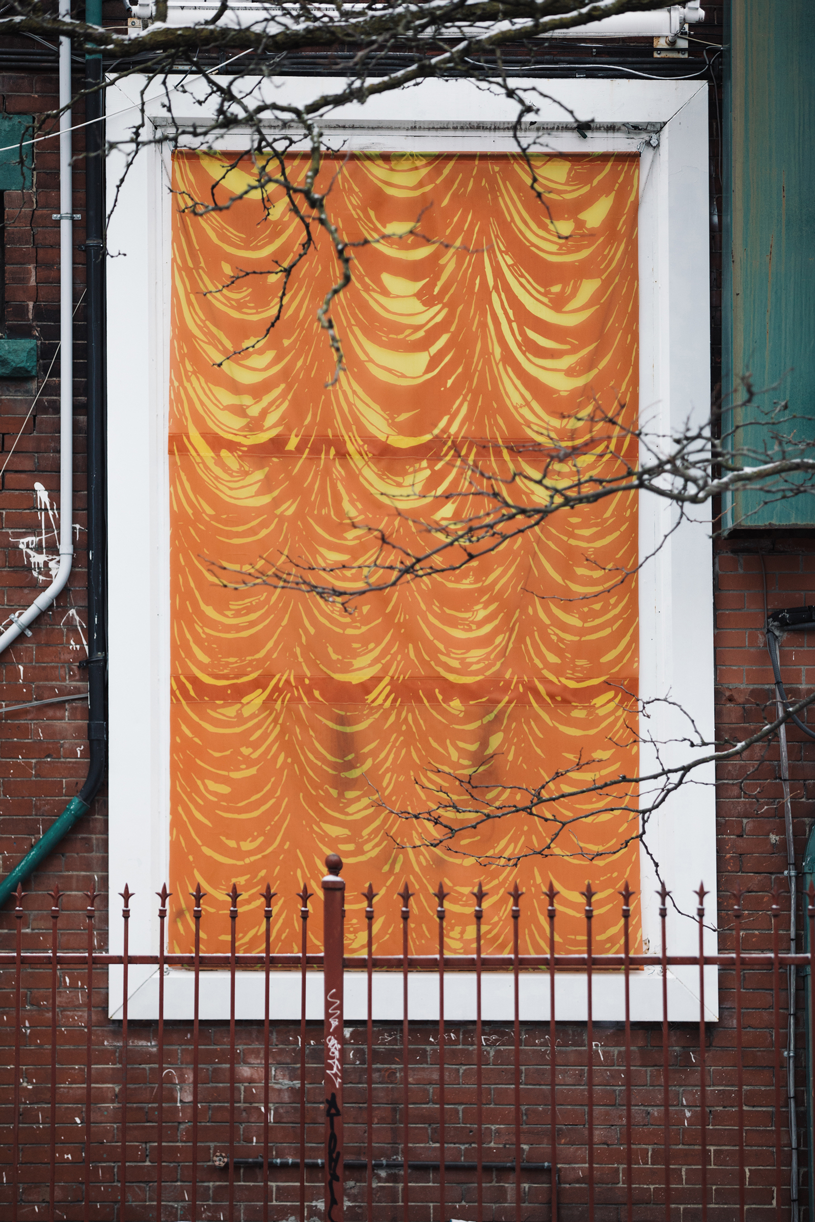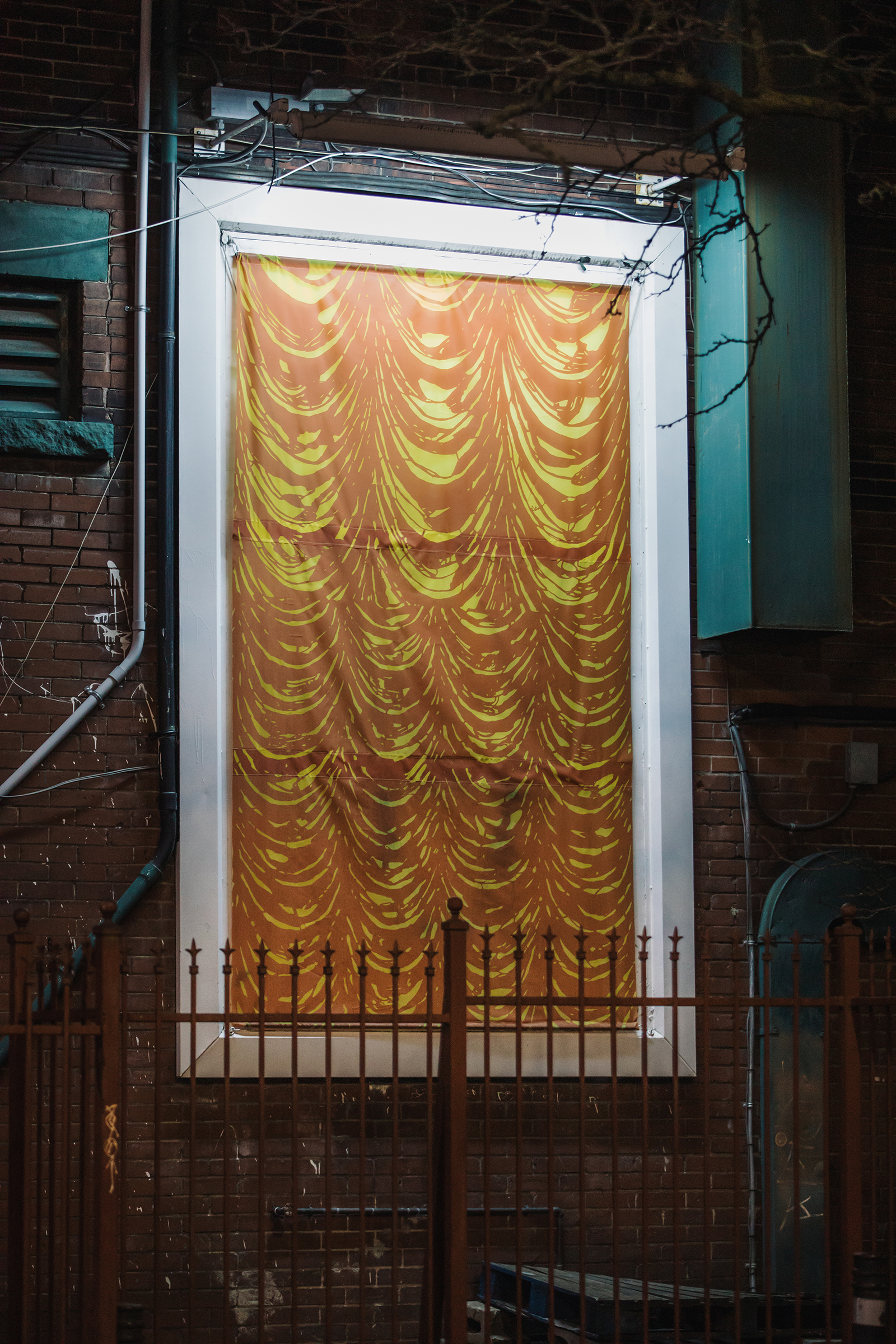 Working with materials such as photo emulsion, plastic filament, and various sheer fabrics, Jealousy presents three sculptural works, each forging an impression of the one before to form a series of abstracted theatrical drapes. Prompted by the history of Mercer Union’s building as a cinema in the early part of the last century, these works come together as adverts for a fictional premiere: a new film adaptation of Alain Robbe-Grillet’s 1957 novel La Jalousie. Noting the double-meaning of the title (“jealousy” or “louvered window”), Kubba attunes to the history and architecture of the building, taking cues from the various mediating forms punctuating its façade—vents, chutes, and other porous passages—that elicit transgression and permit the senses to travel.