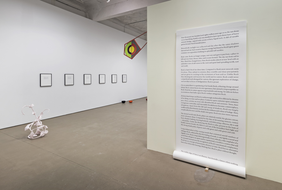 The weakened eye of day, explores how light manifests as a metaphor in our thoughts, obsessions and pursuits, and includes text works, sculpture, ceramics, drawings, paintings and a photographic image. It presents an artistic account of the fundamental strangeness of the world and humanity’s endeavors to order and rationalize the incomprehensible. This is Nolan’s first solo exhibition in Canada.