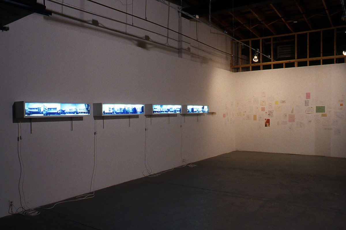 With Placecards, a group of artists engages the notion of place less as an intellectual identification than as a private empathy, less as an occupation than a preoccupation, and always with the insistence upon singularity. Indeed, there is no place like here. Or here. Or here. Each may be conjured only as a precarious mergence of public and private activities and desires. Domains are situated through observation, infiltration, chance encounter, and the minutiae of daily existence. Space is not something to be mapped, but something to fold oneself into, to press against, to slice through, to sit beside. For these artists, kingdoms are more likely to be determined by throwing your coat over the chair than by pissing around the perimeter, and one's presence in a space always alters it.