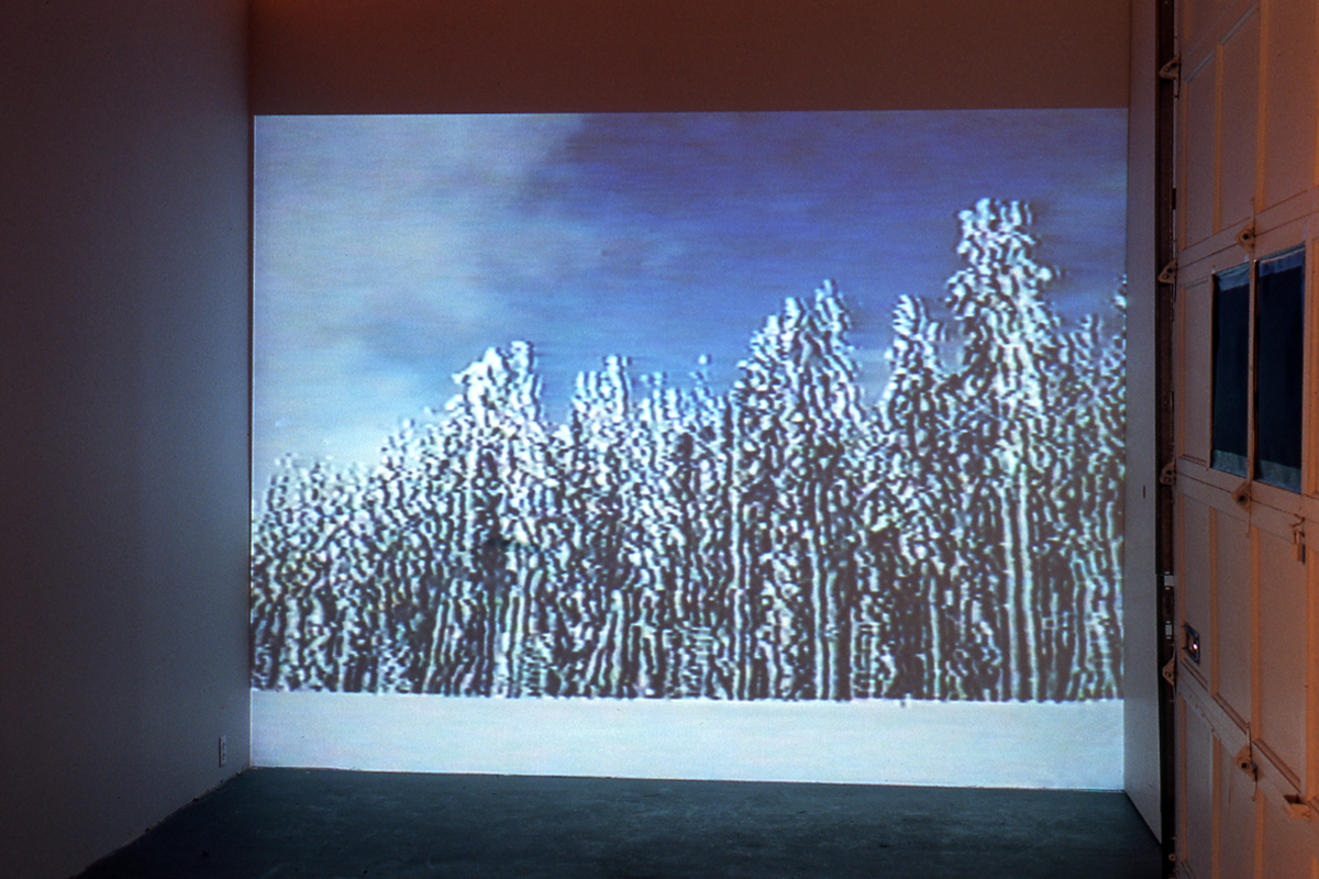 Jennifer McMackon surrenders herself to such personal narratives. In Kokohala, she casually records the winter wonderland of the Kokohala Pass as seen from the window of a traveling car. Deftly utilizing the scene's slippery depth of field, McMackon summons an excruciating contrast; brittle snow-laden pines pierce a frigid blue sky; black, skeletal trunks impossibly precise against a cloud-smeared backdrop. Accompanied by the peppy enthusiasm of the music on the car radio, space distorts, shifting between real and miniature versions of itself. I acquiesce. I sink into the car door, drop my head against the window and succumb to McMackon's dreamy meditation.