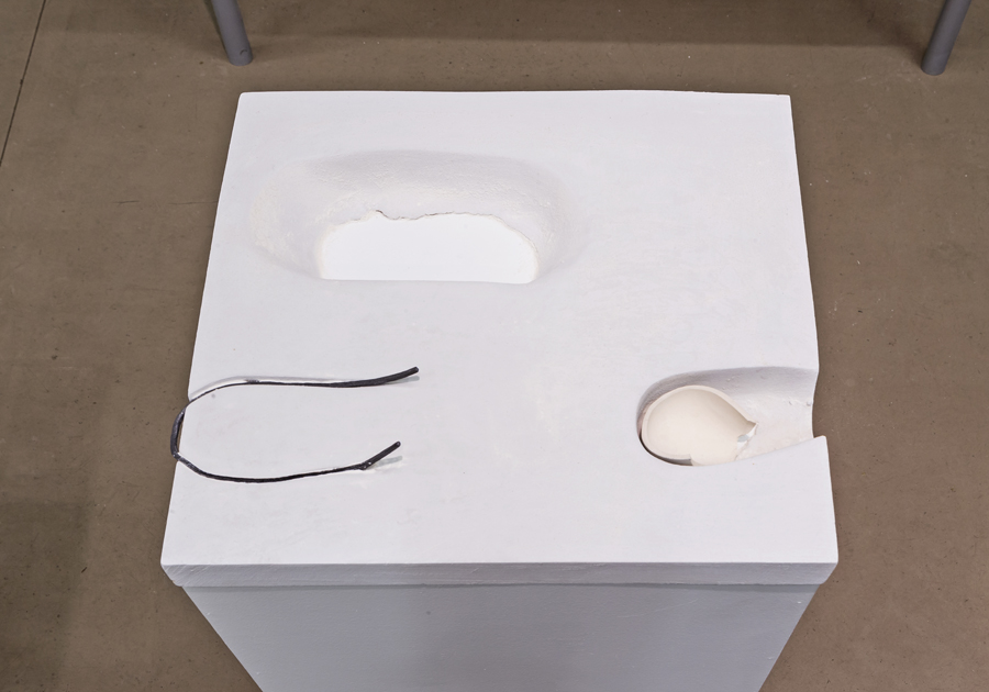 Nikki Woolsey coalesces distinct everyday found materials into sometimes seamless yet habitually unfamiliar forms. Broken vases, glass panels, and other quotidian objects seep into abstraction, questioning how we perceive objects and place value, and disrupting existent systems of knowledge.