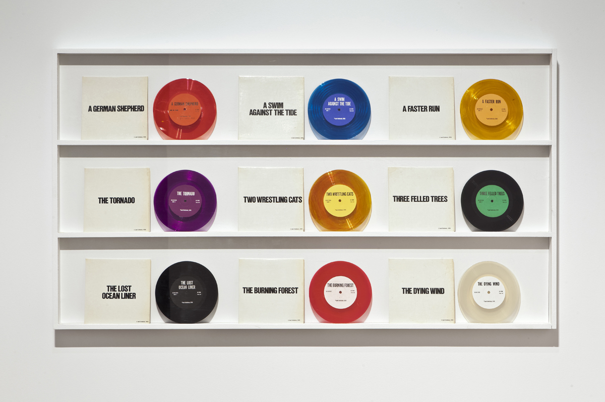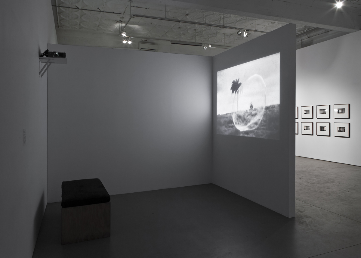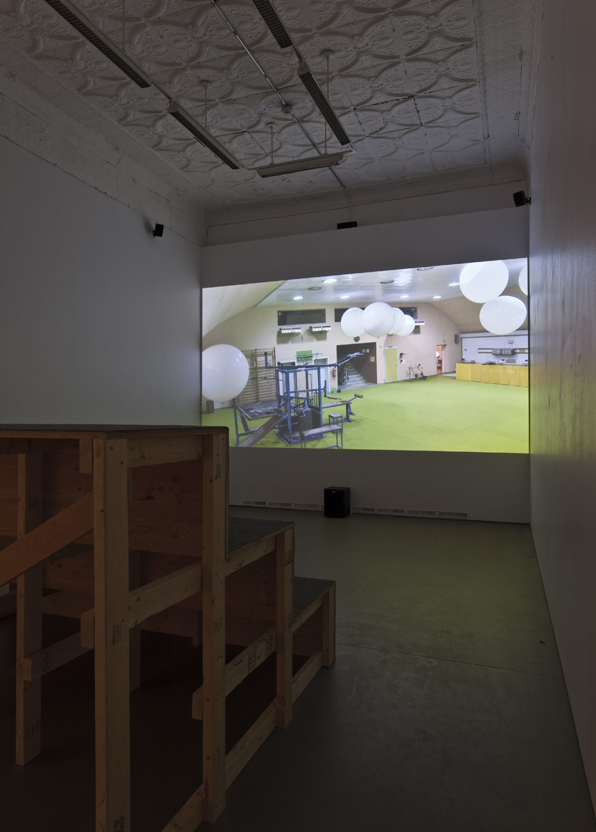 Taking its name from a piece of weather lore, the exhibition puts into conversation artworks that contend with atmospheric effects and environments—whether the austere solo living systems in Absalon’s Propositions d’habitation, or the abstraction of the sky into the printed page in Bruce Nauman’s LAAIR, or the reverie of a bubble in an infinite float in Cao Guimarães and Rivane Neuenschwander’s Inventory of small deaths (blow). A complete set of Jack Goldstein’s 45rpm sound effect recordings form an important context in the exhibition, including The Tornado, pressed to purple vinyl in order to signal the ominous sky of an impending storm. Jonathan Monk trains a 16mm camera on the very same Goldstein record, capturing it in the cyclone of its turntable play, yet suppressing the sound to render The Silent Tornado (for Jack Goldstein). For the photograph Nimbus D’Aspremont, Berndnaut Smilde uses smoke, moisture and spot lighting to manufacture an indoor cloud that lives momentarily suspended in a surrealist wish fulfillment. John Massey’s photo series Twilight’s Last Gleaming is exemplary of his longstanding interest in enclosed spaces. Based on a scale model of an interior setting, the resulting image frames a situation of contained existence analogous to consciousness. In Heike Baranowsky’s Barometer (i), we are immersed in a specialized low pressure room built during the GDR era for training high performance athletes. Though the site was decommissioned after the Cold War, it was never dismantled. The room’s promise is reactivated by Baranowsky’s insertion of weather balloons, which probe the space in a long duration video loop. Together the works form their own set of environmental conditions, triggering experiences of a familiar sort: the observation of time in weather events and the precise moods cast by interior shelters, their own contained atmospheres.
