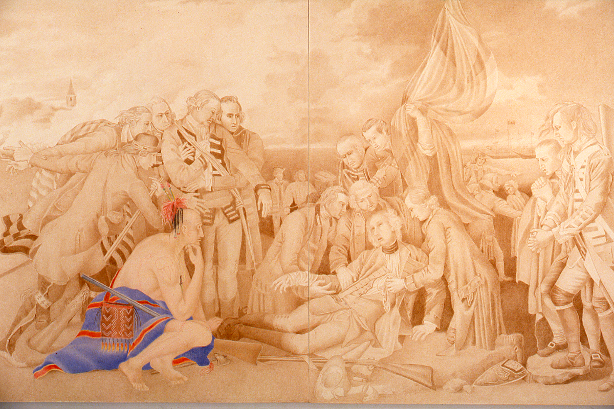 The histories presented by John Abrams, Stephen Andrews, Robert Houle, Sara Leydon, Edward Poitras, and Jane Ash Poitras are of an individual and collective nature. Beginning with a perspective informed by personal experience, the statements expand to encompass a cultural and/or community response. For example, Houle's appropriation of Benjamin Wests' The Death of Wolfe was inspired by a recurrent statement of Houle's grandfather's: "When history was made, an Indian was present". Yet, the implications for the validation of the role and place of the First Nations in much of early Canadian history are clear. For all of the artists in the exhibition, a personal/communal alignment appears appropriate for "without the reconciliation of the self to the community we cannot invent ourselves". 1