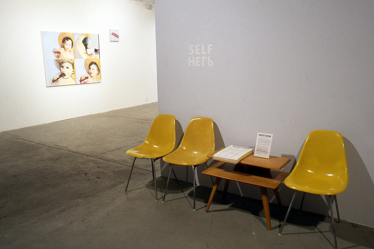 Now that it is common to view processes and transactions through models of efficiency, the artist offers a welcome proposition. Artists are the major players who combat the subsumption of individuality by brand identities. When the terms for discussion are found somewhere between self-help manuals and hermetic theories, it's time to look outwards; to create a new vision and language. In Self Help, a varied group of artists diverge and cross paths to make their own mark on the bottom line. The results range from confessional to analytical. All however, reflect and celebrate the idiosyncrasies of personal experience.